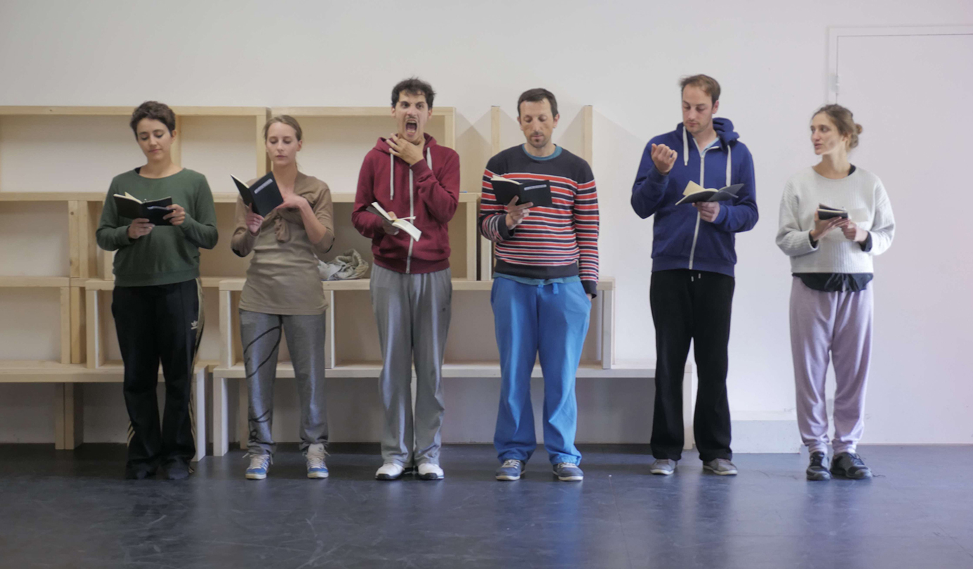 Ce travail se construit avec six individus qui oublient pour mieux se faire confiance et pour vivre dans le présent. Dans le plaisir d’être ensemble, ils tentent de dire simplement ce qu’ils ne savent pas vraiment encore. Exister pleinement, maintenant et à l’avenir, avec ses doutes comme certitude. Les interprètes sont des individus qui tentent, qui font et défont sans cesse. Ils sont des singularités perdues dans un espace ouvert, un groupe défini par une scénographie réalisée par le duo de plasticiens THTF.