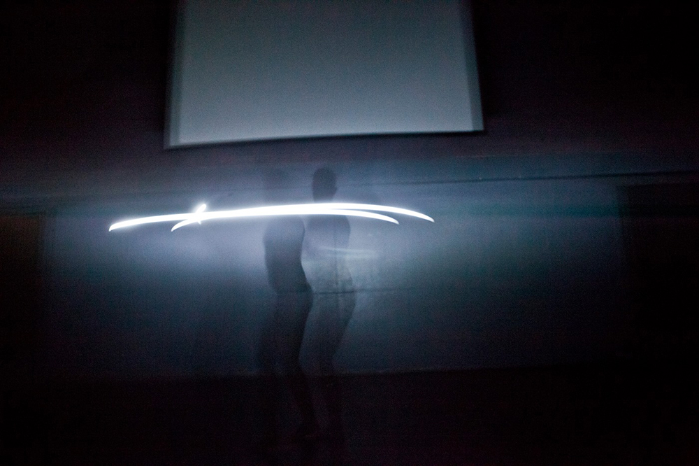 « Un oeil collé à un écran, un couteau gratte un bout de bois, un projecteur éblouit une ampoule, un visage est enfoncé dans une feuille d’aluminium ». Fabula de Bastien Capela, est une proposition à la croisée de l’installation vidéo et de la performance chorégraphique. Telle une histoire d’images réelles et numériques en dialogue, objets, vidéo et corps en mouvement s’y superposent pour nous donner à voir des figures et des êtres tout droit sortis d’un rêve ou peut-être d’un de nos souvenirs.