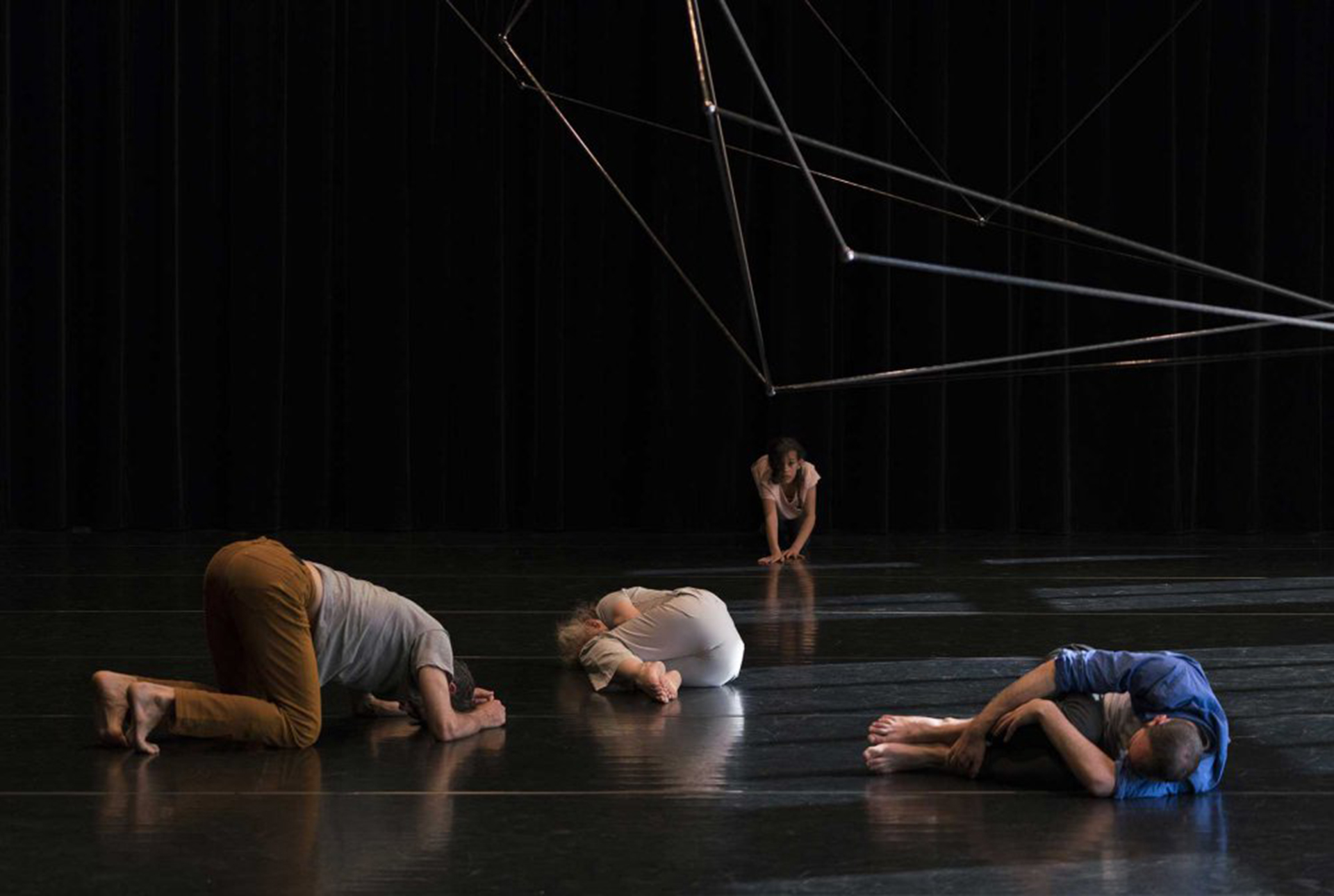 Assis est une fiction ethnographique d’un peuple qui aurait passé trop de temps assis. Une vision décalée d’une posture qui aurait envahit le monde du travail, les espaces public, les espaces intimes, le dedans, le dehors. C’est une pièce de danse, on bouge assis, on se déploie assis, on traverse assis, on se raconte assis